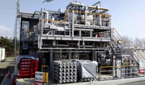従来の高温・高圧のハーバーボッシュ法に代わり、再エネ水素を原料として新規開発触媒により低温・低圧条件でアンモニアを合成。CO2排出量を大幅削減。