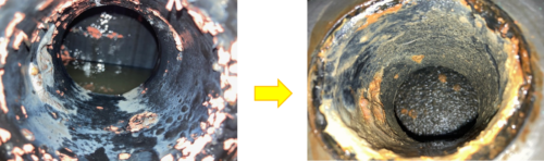 例えば熱交換器で管路閉塞してしまい効率落ちてしまっていても洗浄機を使用すると改善されます。