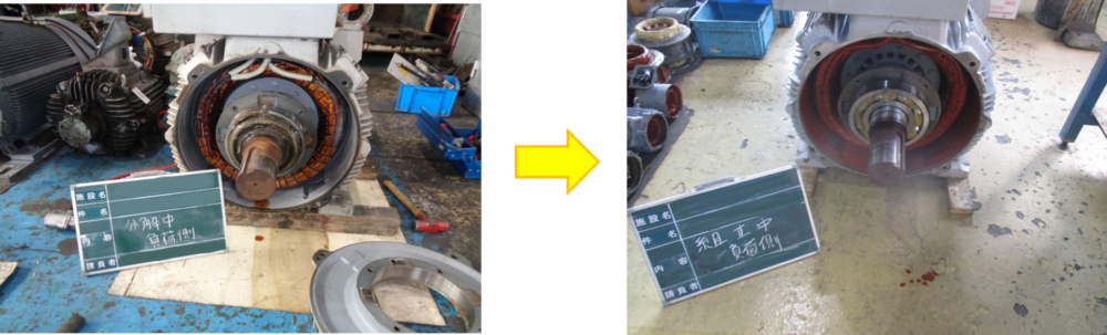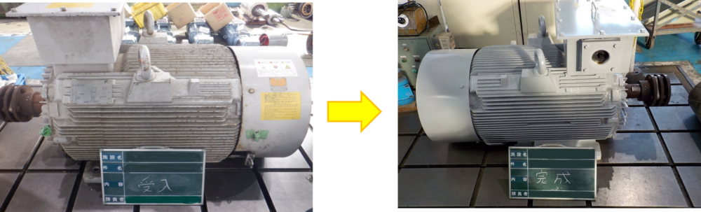 ベアリング交換、洗浄、巻替え、塗装、溶射、バランス調整と一貫して行っています。
